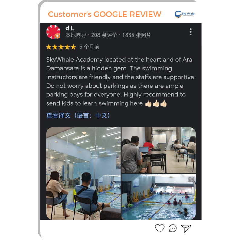 Get Inspired by Our Customers’ Success Stories! Watch Our Testimonial Video and Register Your Class Today and contact Skywhale Swimming Academy.